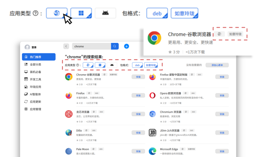 应用搜索列表增加包格式标识:展示更直观,筛选更精准