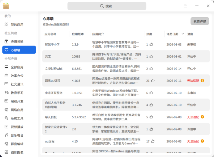 功能上线至今,我们累计收到 100+ 款应用许愿,其中已有 30+ 款成功适配上架。社区研发团队持续跟进高热度需求,更有热心用户主动投递配置方案,让许多“不可能”变成了“一键运行”。