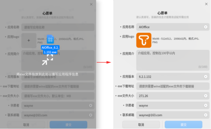 提交你想要的应用名称与使用场景。社区研发会优先关注高热度需求,也欢迎其他用户主动投递已有的解决方案。