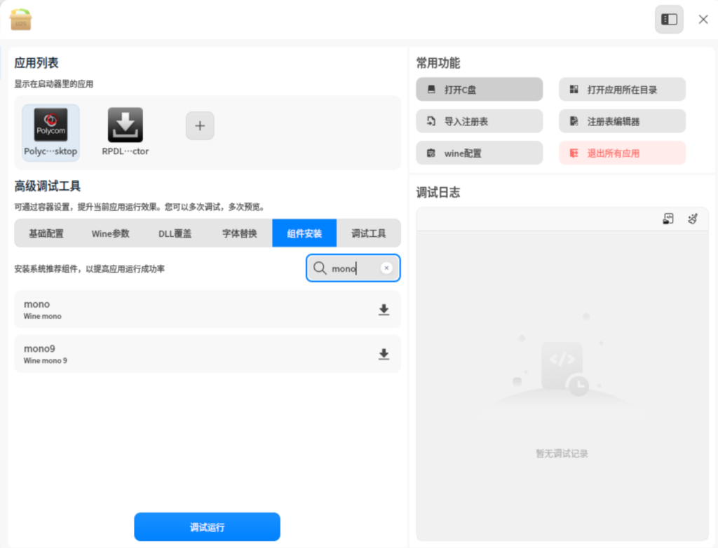 在 高级调试 → 调试工具 中,点击“Wine 设置” ; -