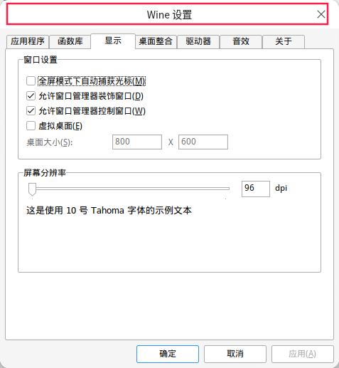 这通常与窗口管理器修饰有关,你可以尝试关闭 Wine 的窗口修饰功能。