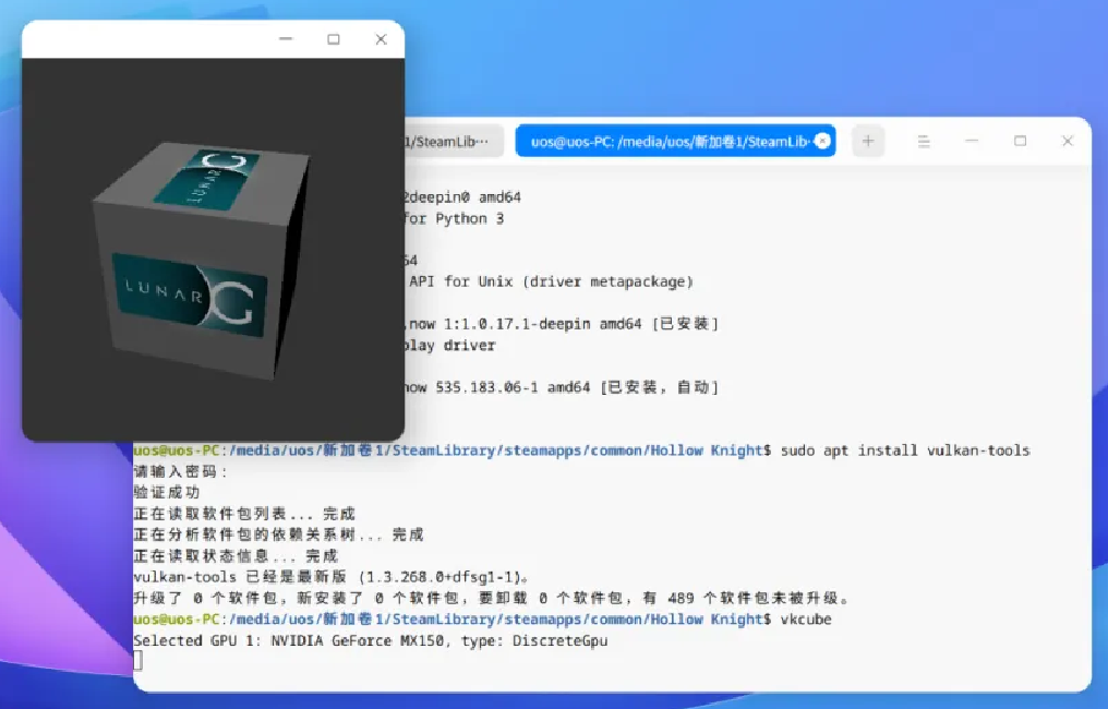 安装完成后,再安装 vulkan-tools 并测试: