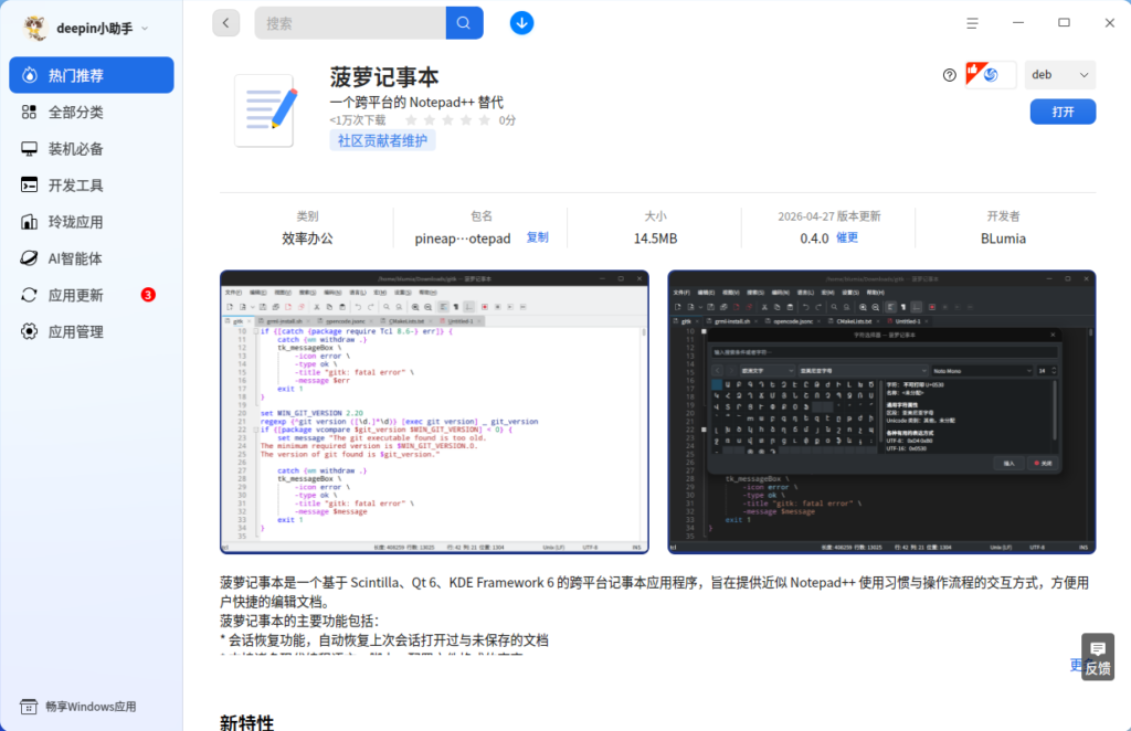 在开源圈里,总藏着一群热爱技术、爱分享的开发者,用一行行代码把日常工具变得更好用,也默默守护着开源生态。由 deepin社区资深开发者 BLumia (GitHub:@BLumia)开发的菠萝记事本和菠萝看图,就是这样两款干净又好用的跨平台开源小工具。